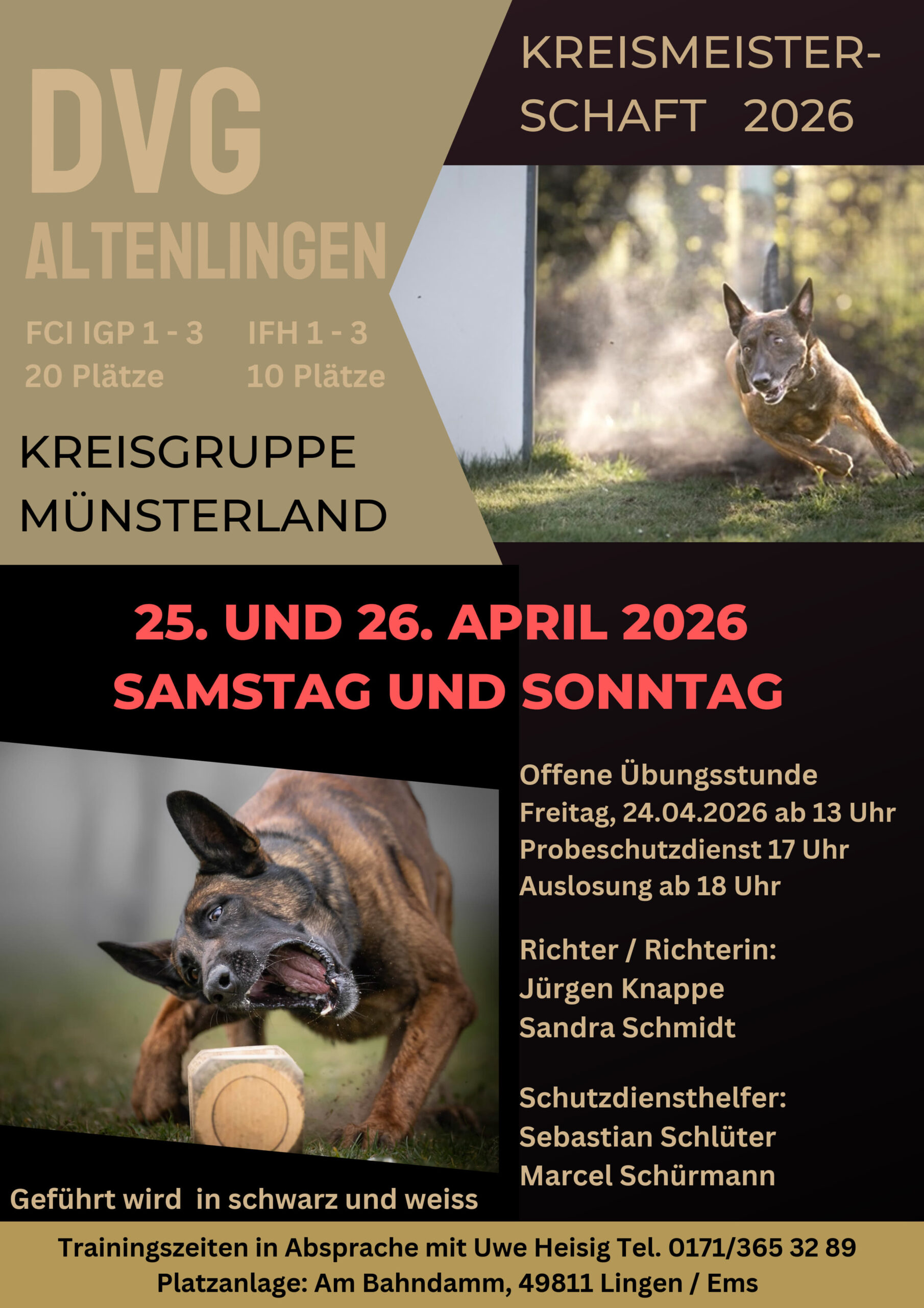 Wichtiger Hinweis für Starter: Für die Kreisprüfung beim MV Altenlingen sind nur noch wenige Plätze verfügbar (1x Fährte, 3x IGP). Schnell melden lohnt sich!